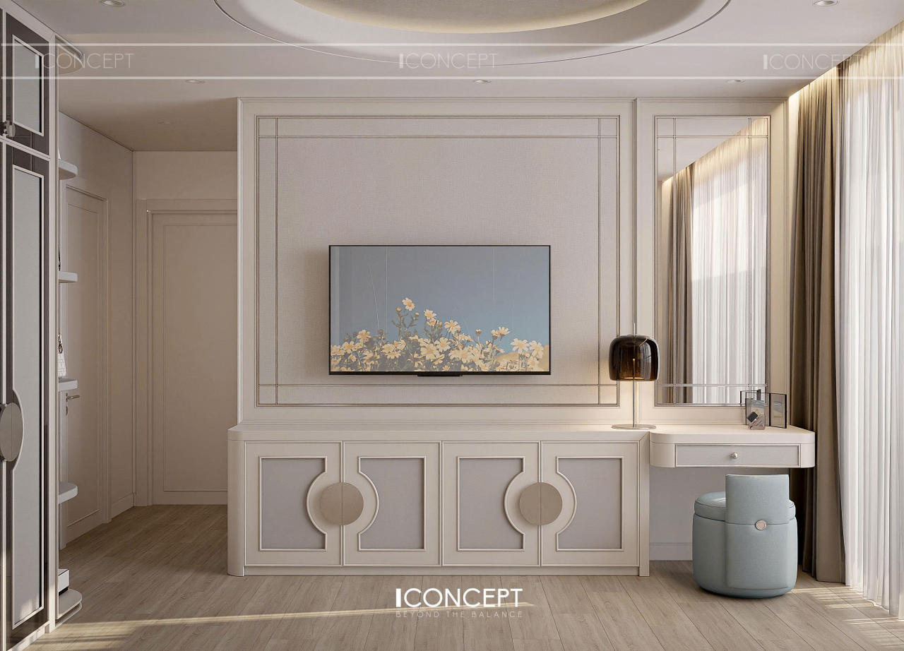 Không gian được tổ chức theo bố cục cân bằng, đường nét tinh giản nhưng đủ chiều sâu, tạo nên cảm giác sang trọng và chỉn chu trong từng chi tiết.
