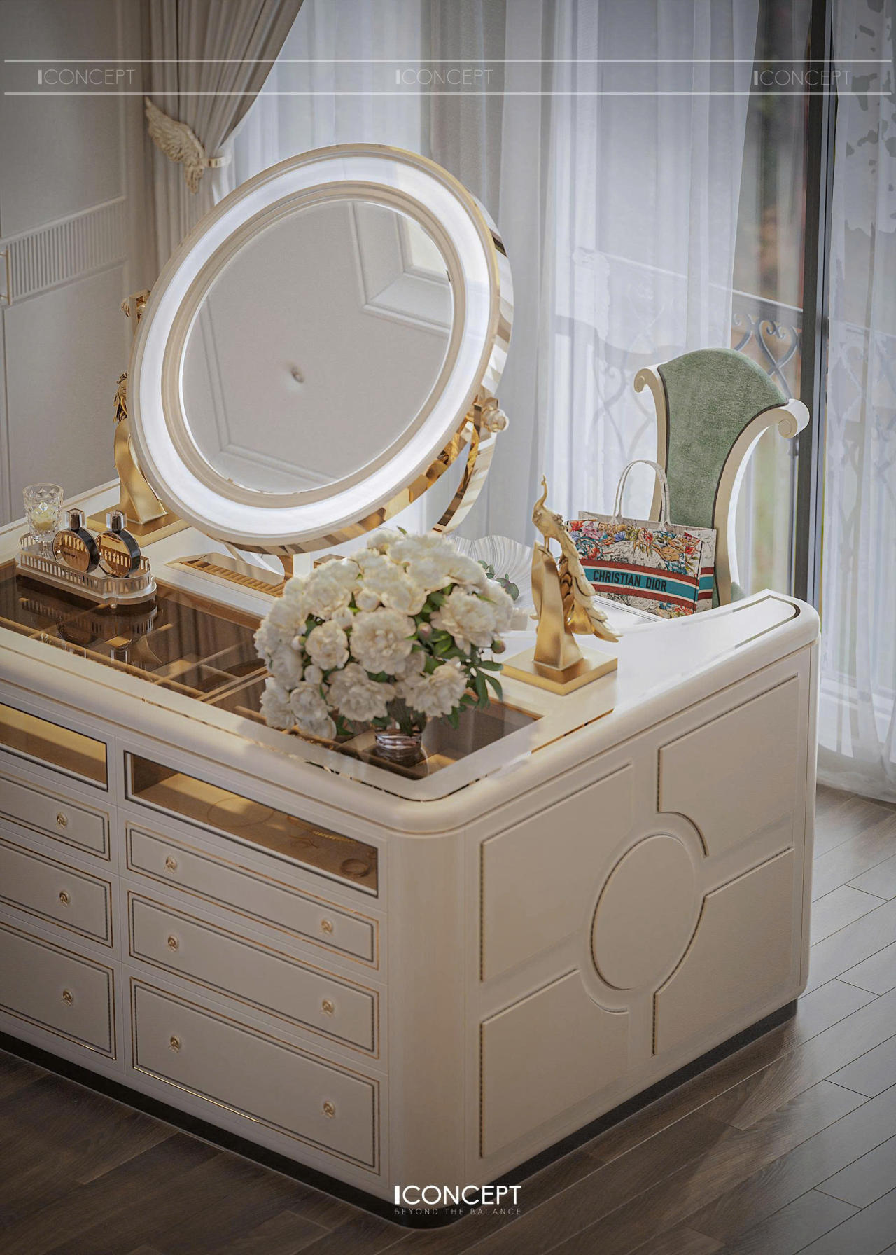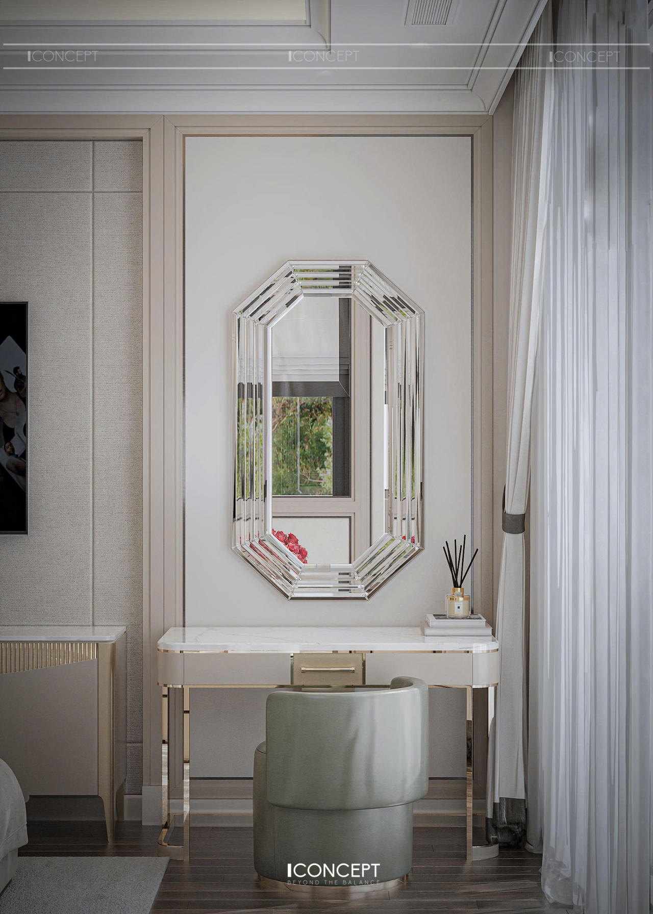 Dự án được ICONCEPT định hình theo phong cách Tân Cổ Điển đương đại, nơi các giá trị thẩm mỹ cổ điển được tinh giản và tái cấu trúc trong một ngôn ngữ thiết kế hiện đại, nhẹ nhàng và giàu cảm xúc. Không gian không phô trương bằng chi tiết cầu kỳ, mà tạo dấu ấn bằng tỷ lệ chuẩn mực, vật liệu cao cấp và sự tiết chế đầy chủ đích.